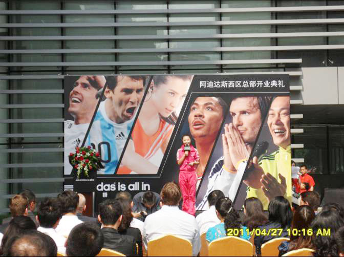 2011年 4月 阿迪達(dá)斯西區(qū)總部辦公室落成儀式 2011年 4月 正式簽約成都曲美家居每月路演活動(dòng)御用主持人