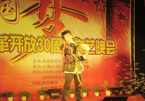 簡介:四川眉山人,先在成都工作,畢業(yè)于西華師范大學計算機學院,層在學校參加過多次歌手大賽,08年獲得計算機學院歌手大賽第一名,09年參加蒙牛酸酸乳奔向北京歌唱比賽獲得小組第一,09年參加南充市木老桃花節(jié)歌唱比賽前八,從08年至今參加過無數(shù)次商業(yè)演出。