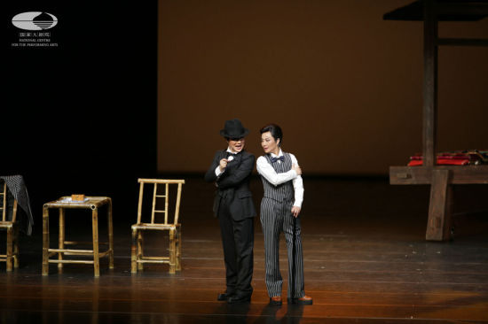 不得不提的是,演出形式很舞臺(tái)劇,演出過(guò)程中,舞美隊(duì)工作人員身著統(tǒng)一的民初背帶工作服,將兩盞聚光燈不時(shí)推上推下,走進(jìn)舞臺(tái)表演,不斷“間離”故事情節(jié)的發(fā)展。甚至每一場(chǎng)都會(huì)出現(xiàn)一位演員跳出故事,以第三人稱(chēng)代序劇情進(jìn)展的表演方式。