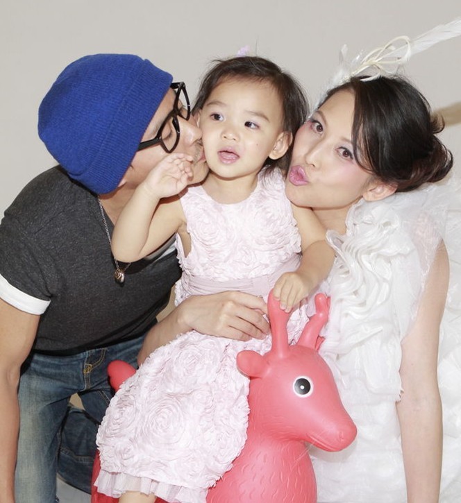 蔡少芬挺大肚拍全家福 與愛女玩親親