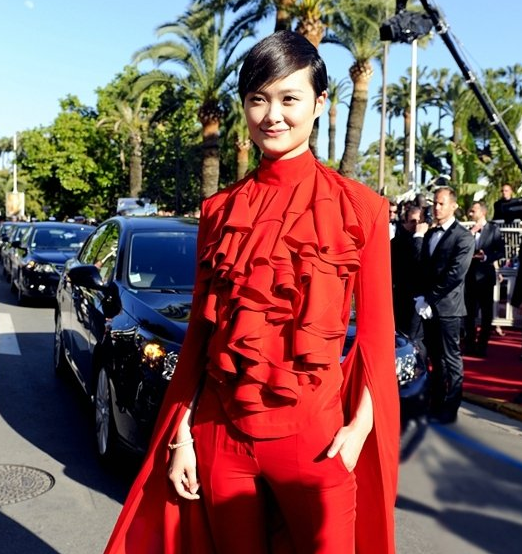 李宇春戛納紅毯首秀 霸氣紅袍亮相氣場足