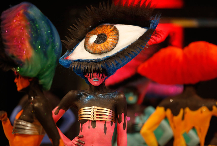 當(dāng)?shù)貢r(shí)間2013年5月11日,馬耳他瓦萊塔,模特身著顏色濃郁的奇裝異服。在T臺上演繹非現(xiàn)實(shí)主義。色彩鮮艷仿佛身著非現(xiàn)實(shí)主義油畫。成都演藝公司成都文化傳播公司成都演出公司成都模特公司
