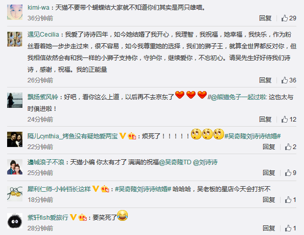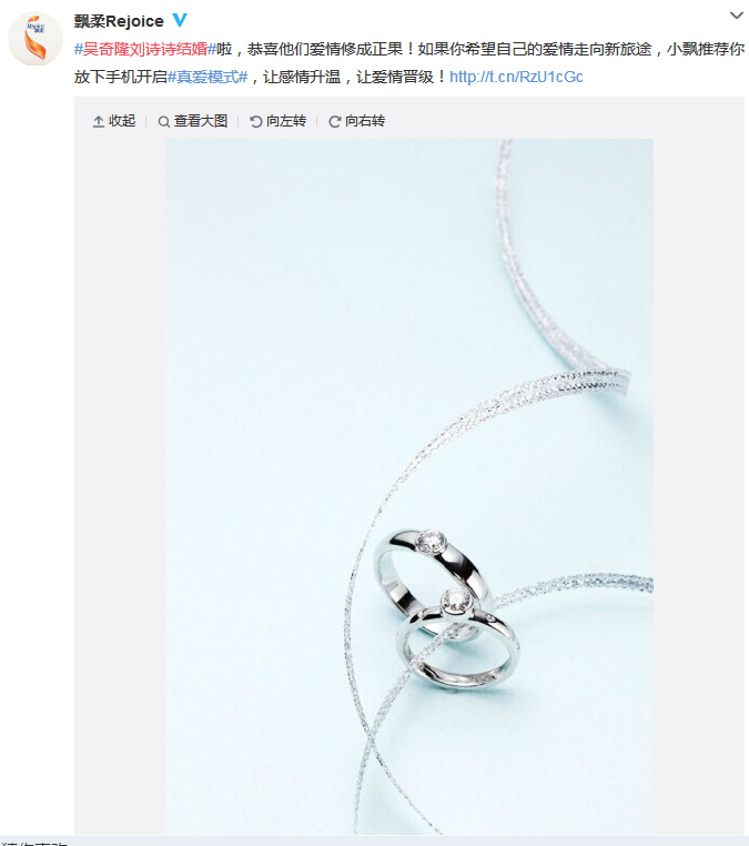 熱門事件的曝光平臺基本上基于微博微信兩者之間,其中也包括事件的預熱階段,如周杰倫結婚,從信息爆出到婚禮結束,均在微博話題榜單首頁。但微博平臺的短效熱議度決定了一個事件從發(fā)生到結束時間一般為1-2天,甚至短到可以按小時來計算。所以,在熱門事件或是話題人物出來后,品牌首先需要捷足先登的發(fā)出帶有品牌形象的關聯(lián)文案,讓粉絲第一時間知曉后轉發(fā)并互動,既有娛樂敏感性又能產生流量。以吳奇隆劉詩詩領證為例,代表作:可口可樂、杜蕾斯、飄柔、天貓等。